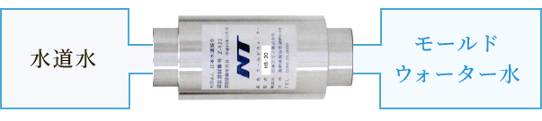モールドウォーターは、磁気の作用で除菌効果のある、まろやかで浸透力・溶解力・熱伝導力の高い磁気式水活性装置です。
